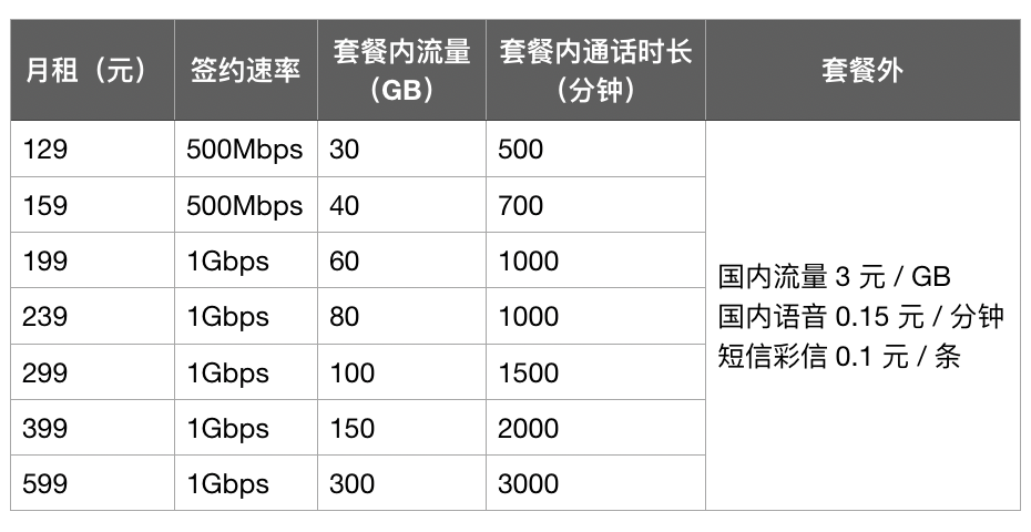 此处的「极速版」并非 1Gbps,90 元版本为 500Mbps套餐资费,各家运营商大同小异
