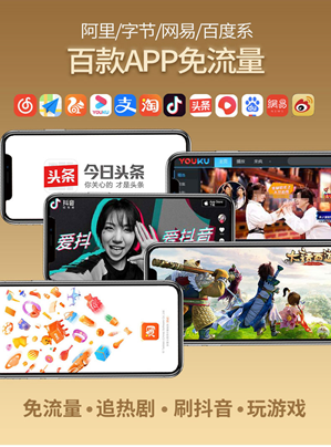 (2)抖音、今日头条、天猫、淘宝、支付宝、钉钉、新浪、优酷视频、高德地图等数百款APP免流量。